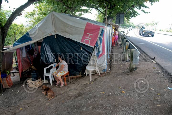 VILLAHERMOSA, TABASCO, 29AGOSTO2010.- Pobladores que tienen sus casas bajo el agua desbordada por el río Grijalva se instalan con improvisados techos sobre la carretera federal Villahermosa-Macuspana. FOTO: MARCO POLO GUZMÁN HERNÁNDEZ/CUARTOSCURO.COM