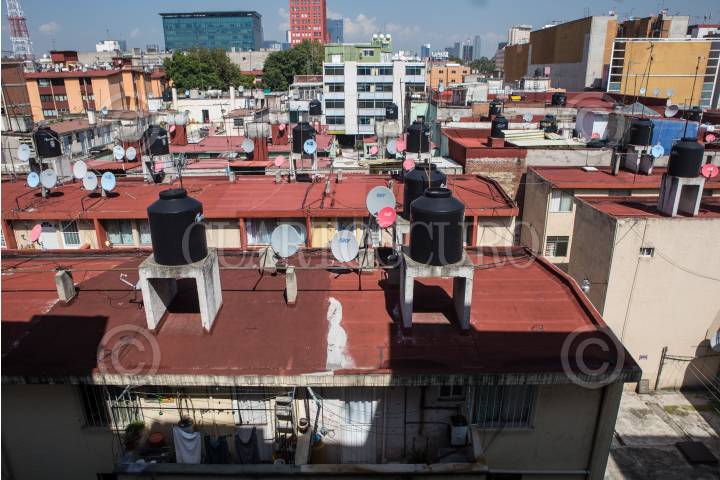 CIUDAD DE MÉXICO, 18JULIO2018.- Vista panorámica de los tejados y tinacos de agua de decenas de capitalinos en la delegación Cuahtémoc. FOTO: TERCERO DÍAZ /CUARTOSCURO.COM