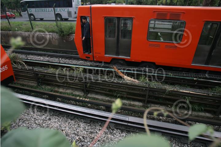 MÉXICO, D.F., 06AGOSTO2011.- Unas ramas de un árbol cayeron sobre las vías del metro entre las estaciones Indios Verdes y 18 de Marzo lo que provoco la suspensión del servicio cerca de una hora. FOTO: IVÁN MENDEZ/CUARTOSCURO.COM