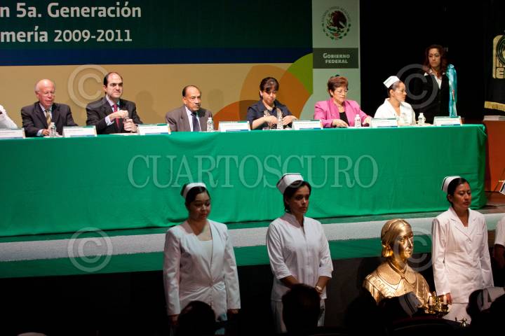 MÉXICO, D.F., 26SEPTIEMBRE2011.- José Narro Robles, Rector de la UNAM y Daniela Karama Tuahumet, Director del IMSS, encabezaron la ceremonia de graduación de la 5ª Generación de Enfermeras Técnicas del IMSS Oportunidades, que se realizó en instalaciones del seguro social. FOTO: GUILLERMO PEREA/CUARTOSCURO.COM