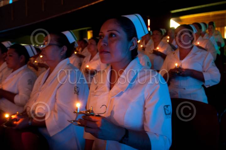 MÉXICO, D.F., 26SEPTIEMBRE2011.- Ceremonia de graduación de la 5ª Generación de Enfermeras Técnicas del IMSS Oportunidades, que se realizó en instalaciones del seguro social. FOTO: GUILLERMO PEREA/CUARTOSCURO.COM