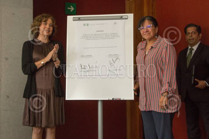 CIUDAD DE MÉXICO, 15JULIO2019.- Nashieli Ramírez Hernández, presidenta de la Comisión de Derechos Humanos del Distrito Federal (CDHDF) y Rosaura Ruíz Gutiérrez, titular de la Secretaría de Educación, Ciencia, Tecnología e Innovación, (SECTEI), encabezaron la firma del convenio, Marco de Colaboración con la Secretaría de Educación, Ciencia, Tecnología e Innovación de la Ciudad de México , en la sede de la Comisión. FOTO: ROGELIO MORALES /CUARTOSCURO.COM