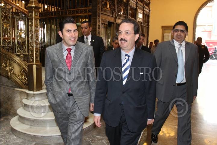 MÉXICO, D.F., 13ENERO2012.- Rodolfo Tuirán Gutiérrez, subsecretario de Educación Superior, Bruno Ferrari, secretario de Economía, y Enrique Villa Rivera, director del Conacyt, entregaron el Premio Nacional de Innovación Tecnológica en la sede de la SE. FOTO: MOISÉS PABLO/CUARTOSCURO.COM