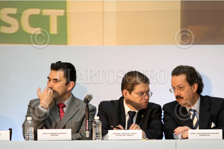 MÉXICO D.F., 29NOVIEMBRE2010.- Fernando González, subsecretario de la Secretaria de Educación Pública, (yerno de Elba Esther) acompañado de Juan Molinar Horcasitas, titular de la SCT y el Sanador, Francisco Javier Castrejon, entre otros encabezo la ceremonia donde se dio a conocer la Nueva Plataforma Tecnológica del Sistema Nacional México. FOTO: CUARTOSCURO.COM