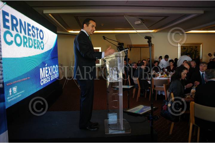 MÉXICO, D.F. 29NOVIEMBRE2011.- Ernesto Cordero Arroyo, aspirante a la candidatura presidencial del PAN, presento su proyecto Desarrollo Económico con Innovación Tecnológica a integrantes del Club de Industriales. FOTO: GUILLERMO PEREA/CUARTOSCURO.COM