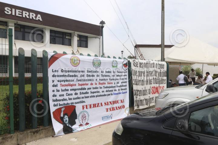 TEAPA, TABASCO, 07SEPTIEMBRE2015.- Profesores, administrativos y estudiantes del Instituto Tecnológico Superior de la región Sierra se manifestaron pacíficamente y cerraron el plantel educativo en demanda de mejoras salariales, prestaciones y respeto al contrato colectivo laboral y acusaron que el director del plantel se niega a cumplir con lo previsto en dicho documento. En el centro profesional, que se ubica en el kilómetro 4 de la carretera estatal Teapa-Tacotalpa, alumnos aprovecharon la manifestación para exigir mejores aulas, centro de investigaciones, que el transporte escolar funcione, y que se le de mantenimiento a los baños, ya que actualmente emiten olores fétidos. FOTO: MARCO POLO GUZMÁN HERNÁNDEZ /CUARTOSCURO.COM