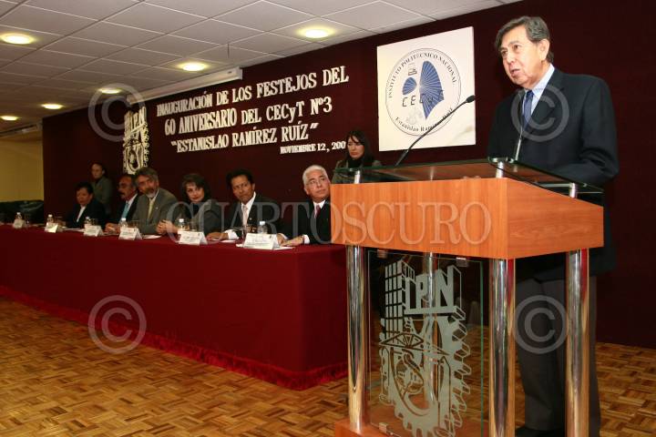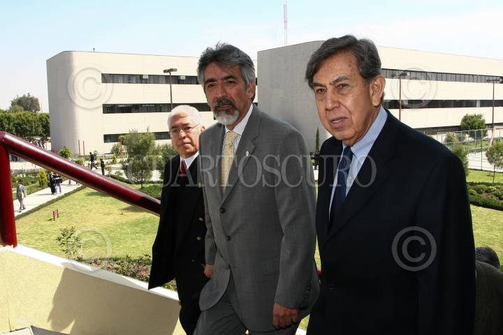 ECATEPEC, EDO. DE MÉX. 12NOVIEMBRE2009.- José Enrique Villa Rivera, Director del Instituto Politécnico Nacional (IPN) acompañado de Manuel Pozos Pozos, Director del Centro de Estudios Científicos y Tecnológicos No. 3 “ Estanislao Ramírez Ruiz” y de Cuauhtémoc Cárdenas Solórzano, Presidente de la Fundación para la Democracia, acudieron a dicho plantel para dar inicio a las actividades de la conmemoración del 60 Aniversario del CECyT No. 3 ubicado en este municipio. FOTO: GUILLERMO PEREA/CUARTOSCURO.COM