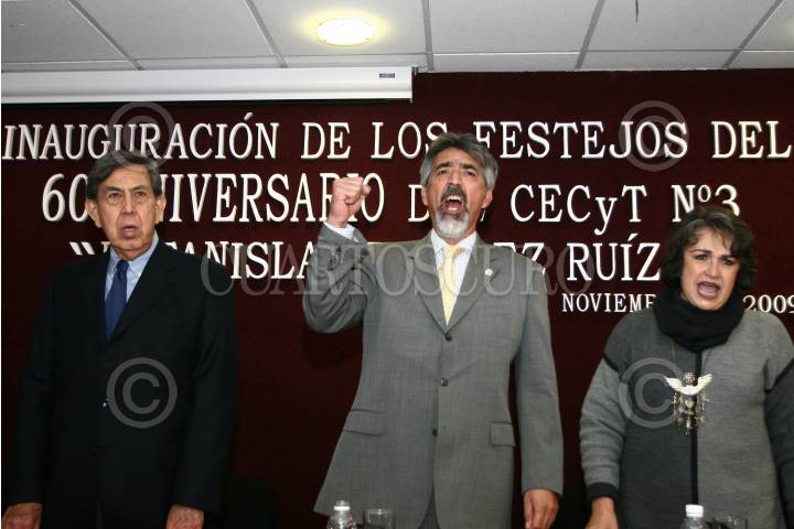 ECATEPEC, EDO. DE MÉX. 12NOVIEMBRE2009.- José Enrique Villa Rivera, Director del Instituto Politécnico Nacional (IPN) acompañado de Cuauhtémoc Cárdenas Solórzano, Presidente de la Fundación para la Democracia y Otilia Torres Vivanco Maestra Decana del Centro de Estudios Científicos y Tecnológicos No. 3 “ Estanislao Ramírez Ruiz” durante el inicio a las actividades de la conmemoración del 60 Aniversario del CECyT No. 3 ubicado en este municipio. FOTO: GUILLERMO PEREA/CUARTOSCURO.COM