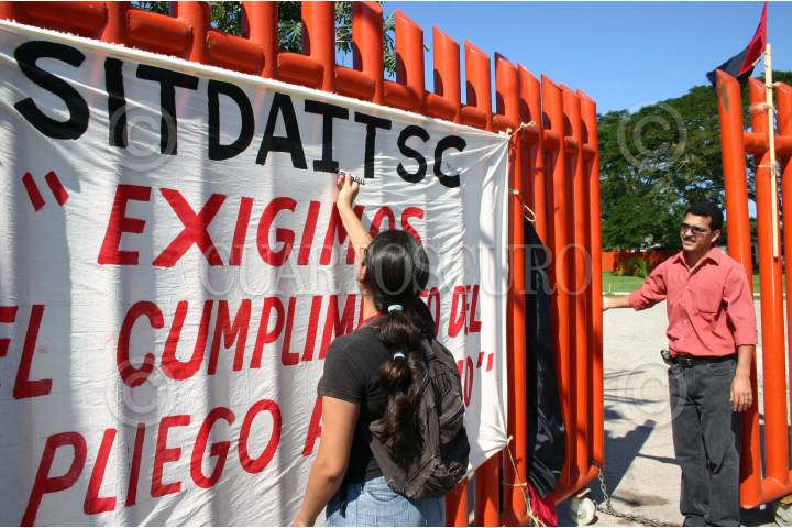 COMALCALCO, TABASCO, 14DICIEMBRE2005.- Esta mañana estallo la huelga en el Instituto Tecnologico Superior de Comalcalco, donde empleados del Sindicato de Trabajadores, Docentes e Intendencia (SITDAITSC) tomaron las instalaciones educativas donde se imparten seis profesiones y alberga a mil 600 estudiantes, para pedir mejores condiciones laborales y sueldos. FOTO: Marco Polo Guzman/CUARTOSCURO.COM