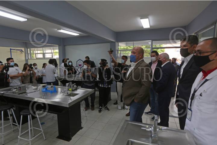 Alumnos de primera generación del Colegio de Estudios Científicos y Tecnológicos del Estado de Jalisco (CECyTEC), estrenan el laboratorio de ya mencionada casa de estudios.