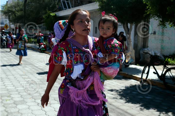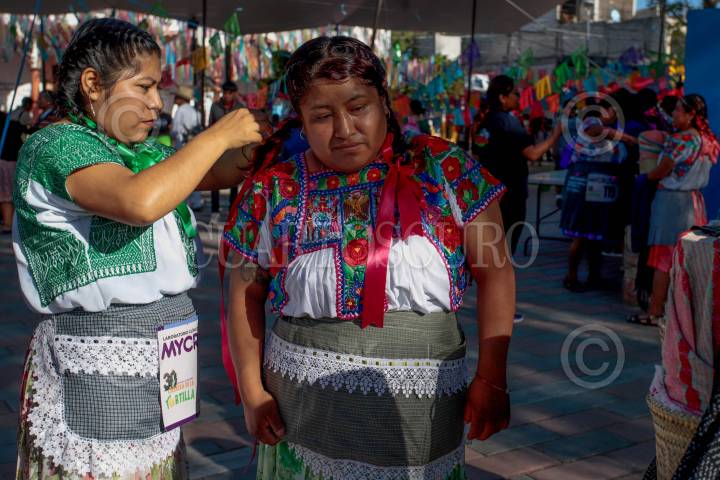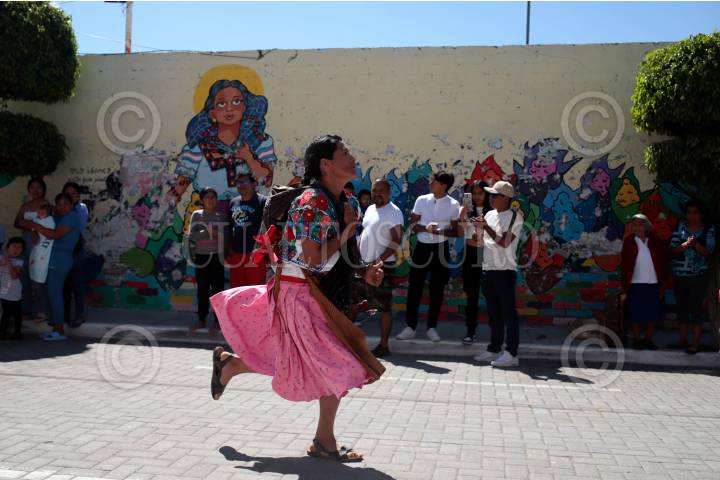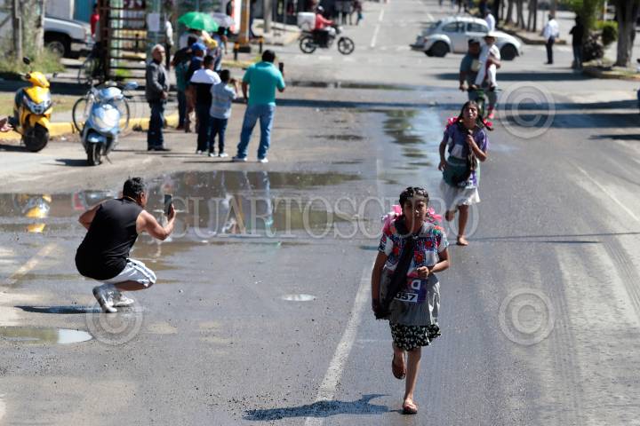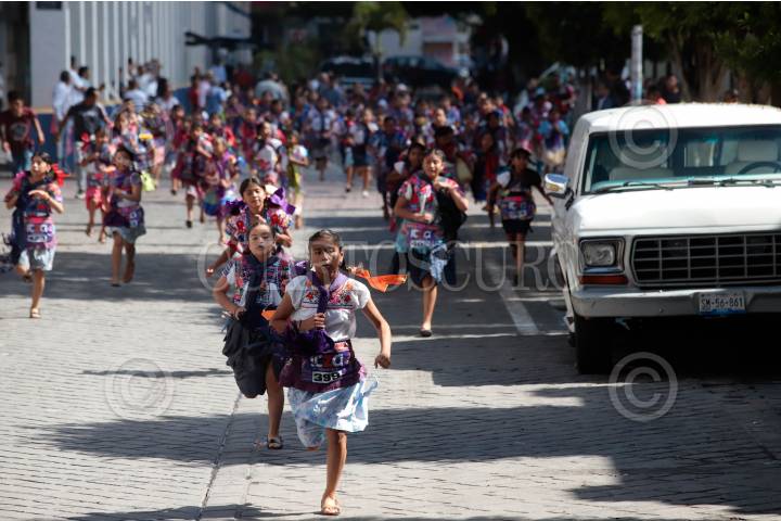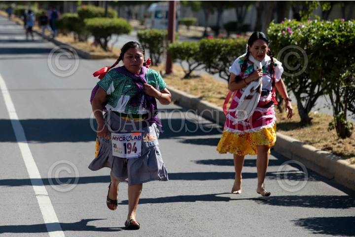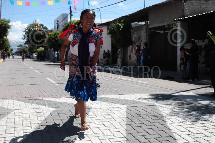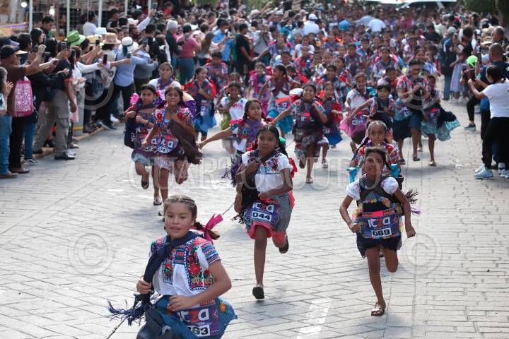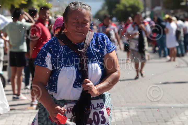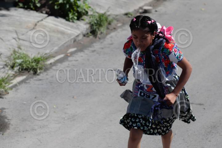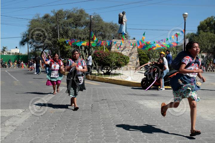Abuelas, madres, y nietas participaron de la Carrera de la Tortilla 2023, en la que mujeres de Coapan, Junta Auxiliar del municipio de Tehuacán, corren descalzas cargando varios kilos de tortillas.