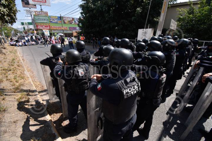 OAXACA DE JUÁREZ, OAXACA, 12AGOSTO2025.- Policías estatales desalojaron un bloqueo que mantenían integrantes del Sindicato Único de Trabajadores del Telebachillerato Comunitario del Estado de Oaxaca sobre la calzada Héroes de Chapultepec en la capital del estado. Los manifestantes solicitaron una reunión con las autoridades estatales para tratar temas laborales y denuncias de acoso y hostigamiento, sin embargo al lugar arribaron elementos de seguridad que dispararon gases lacrimógenos y replegaron a los trabajadores FOTO: CAROLINA JIMÉNEZ MARISCAL/CUARTOSCURO.COM