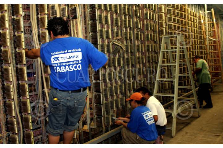 VILLAHERMOSA, TABASCO, 22NOVIEMBRE2007.- Empleados de la paraestatal Telmex dan mantenimiento a su red de telefonía que esta ubicada en la zona de Tabasco Dos Mil. FOTO: MARCO POLO GUZMÁN HERNÁNDEZ/CUARTOSCURO.COM