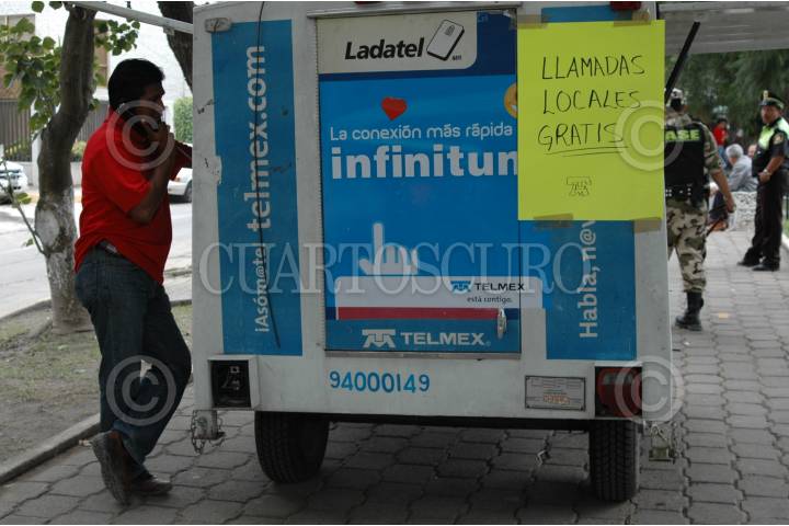 TLANEPANTLA, ESTADO DE MÉXICO, 11SEPTIEMBRE2009.- En Valle Dorado fueron colocadas casetas telefónicas para hacer llamadas gratuitas, mientras pasa la contingencia y terminan las labores de limpieza y las obras de reforzamiento del Emisor Poniente. FOTO: MARIO NULO/CUARTOSCURO.COM