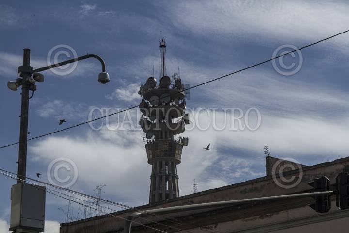 MÉXICO, D.F., 28DICIEMBRE2015.- Torre de Telmex se observa entre palomas y cámaras de seguridad en las calles del Centro Histórico. FOTO: MOISÉS PABLO /CUARTOSCURO.COM