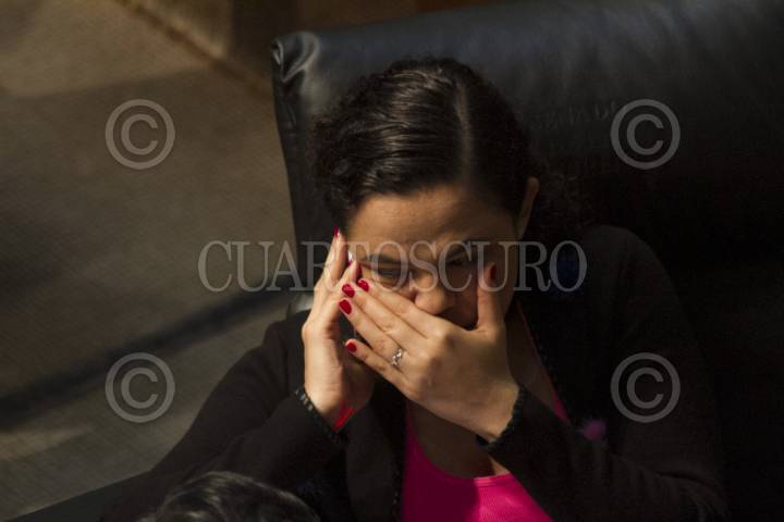 CIUDAD DE MÉXICO, 18OCTUBRE2016.- La senadora Mariana Gómez del Campo habal por teléfono en el Senado de la República. FOTO: MOISÉS PABLO /CUARTOSCURO.COM