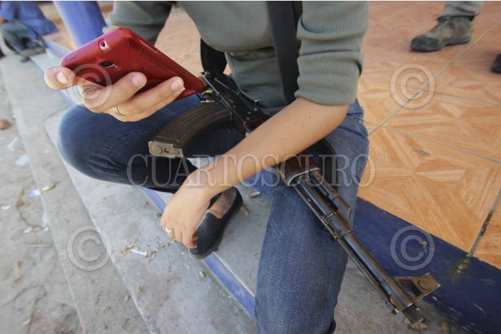 ZONA DE TIERRA CALIENTE, MICHOACÁN, 04FEBRERO2014.- Las autodefensas utilizan como forma de resistencia al cerco informativo las redes sociales desde sus teléfonos inteligentes. Desde que comenzó el levantamiento de las autodefensas en Michoacán, a la par salieron entre las redes sociales paginas de denuncia que llevaron a dar una mejor información que los medios locales. Jóvenes es su mayoría reportan desde sus cuentas, lo que ocurre con las autodefensas, incluyendo: enfrentamientos, reuniones, actividades, etc. FOTO: JUAN JOSÉ ESTRADA SERAFÍN /CUARTOSCURO.COM