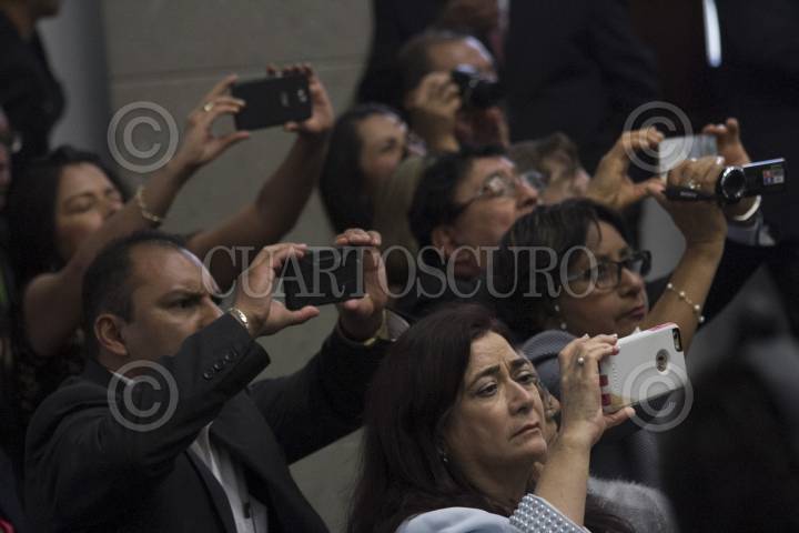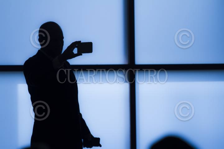 MÉXICO, D.F., 30JULIO2015.- Un asistente a una conferencia de prensa en la cancillería graba con su teléfono inteligente parte de lo sucedido. FOTO: MOISÉS PABLO /CUARTOSCURO.COM