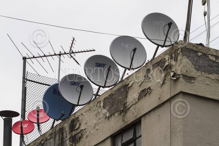MÉXICO, D.F., 18AGOSTO2015.- Antenas de empresas que ofrecen el servicio de televisión de paga se observan en un edificio de la calle de Artículo 123, en la colonia Juárez. FOTO: MOISÉS PABLO /CUARTOSCURO.COM