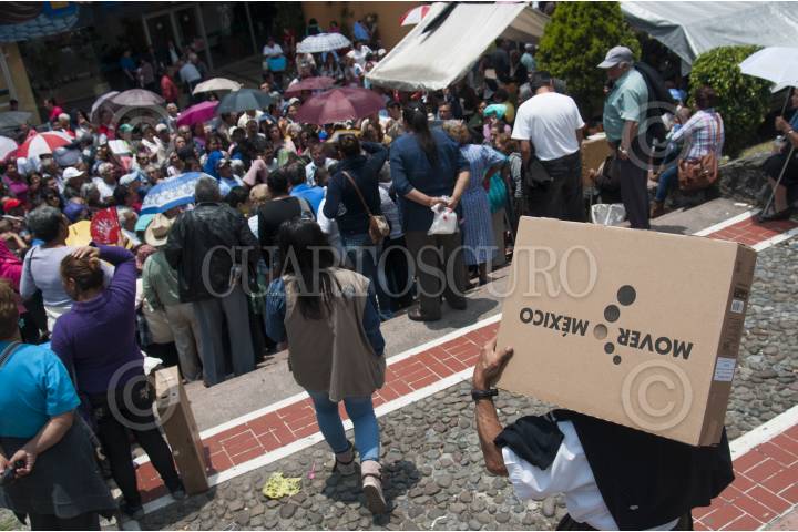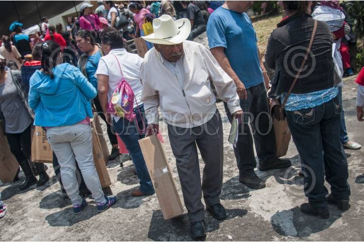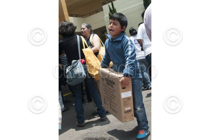 MÉXICO, D.F., 06JULIO2015.- Miles de vecinos de la delegación Álvaro Obregón, que son beneficiarios de algún programa que administra la Sedesol, acudieron a la explanada de la demarcación para obtener una televisión digital de 24 pulgadas como parte del Programa para la Transición hacia la Televisión Digital Terrestre para el próximo apagón analógico. Los principales beneficiarios son las personas de más de 60 años, quienes realizaron filas de más de 3 horas bajo los rayos del Sol, en espera de sus pantallas. Personal de la Sedesol comentó que el día de hoy regalaron 7 mil televisores. FOTO: DIEGO SIMÓN SÁNCHEZ /CUARTOSCURO.COM