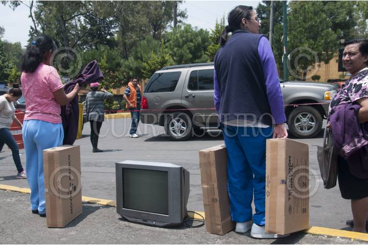 MEXICO, D.F., 23DICIEMBRE2015.- Poco más de 200 televisores han sido recolectados en el Centro de Acopio de Viveros. Según Greenpeace México, en el país se desecharán al menos 40 millones de televisores analógicos, los cuales están construidos con sustancias tóxicas como plomo, cadmio y arsénico, lo que los convierte en un riesgo para la salud. FOTO: ISAAC ESQUIVEL /CUARTOSCURO.COM