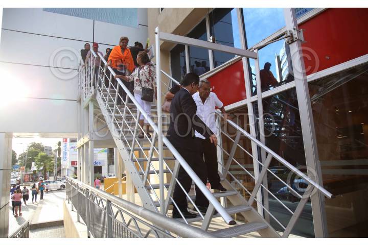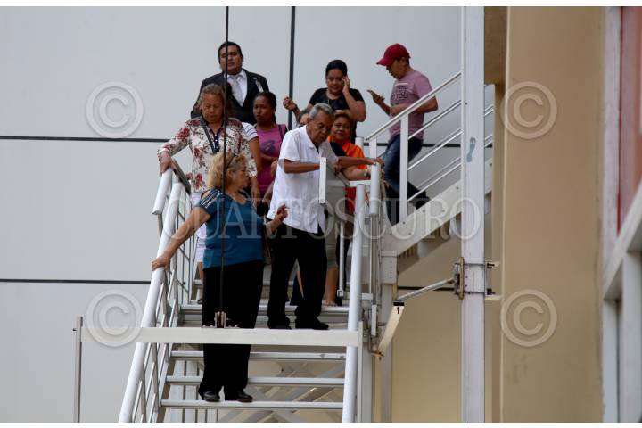 Miles de capitalinos desalojaron presurosos sus edificios tras el fuerte sismo que se sintió esta mañana en la capital.
