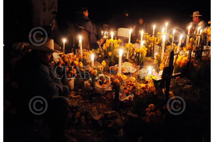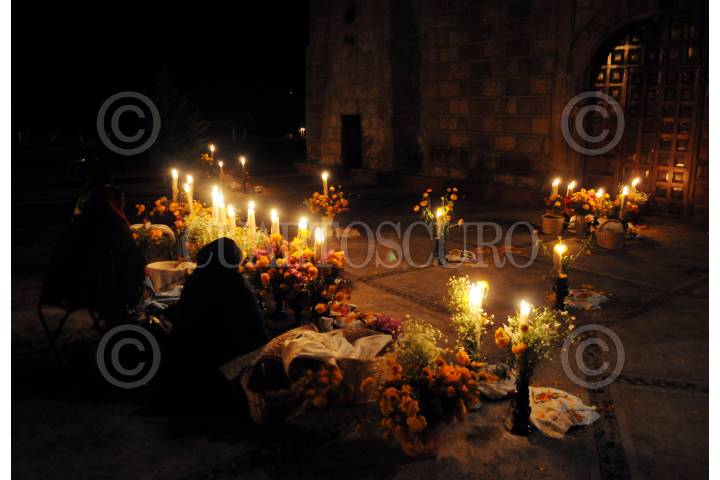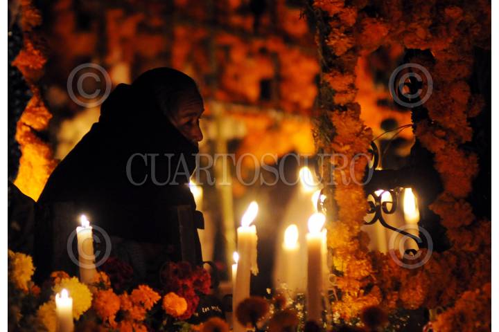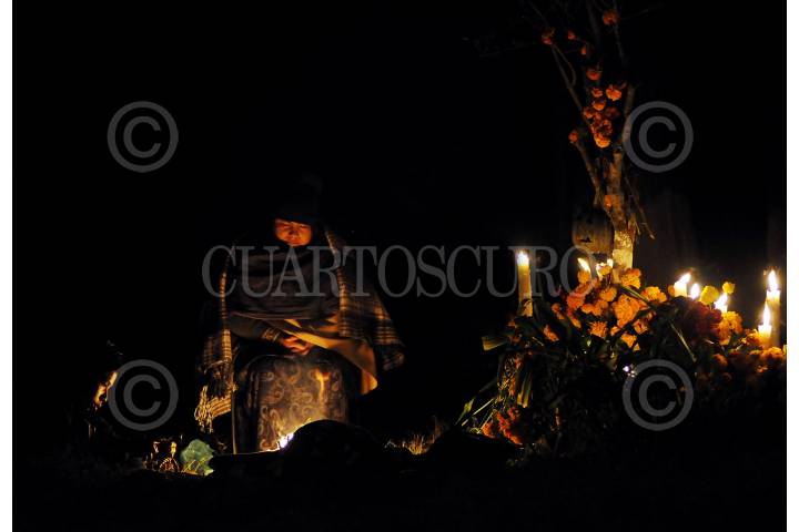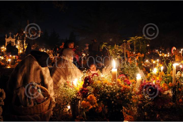 PATZCUARO,MICHOACAN.,02 NOVIEMBRE2008.- Celebración del día de muertos donde se realiza una procesión hacia el panteón y ahí pasan la noche rezando y cantando, el cementerio se ilumina con velas y hay una gran alegría en el ambiente, porque ellos no le temen a la muerte y se sienten acompañados de sus parientes y amigos que ya han perecido. FOTO: FEDERICO ALTAMIRANO/CUARTOSCURO.COM