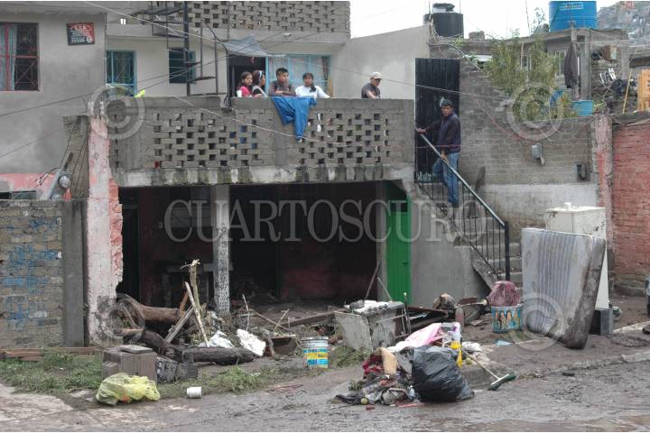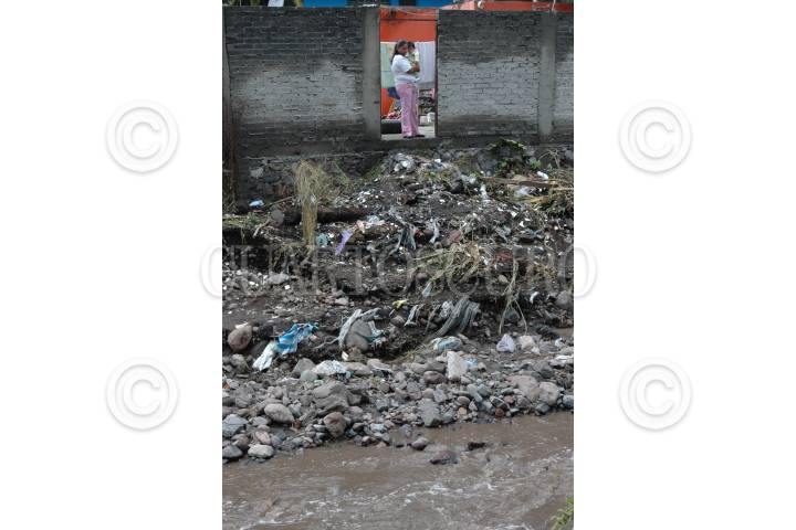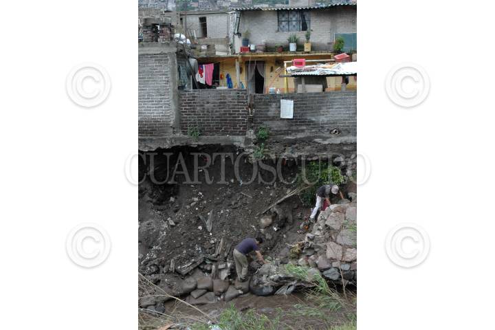 ECATEPEC, ESTADO DE MÉXICO 02NOVIEMBRE2009.- Vecinos de las comunidades Los Bordos, La Esperanza, Hank González y de San Andrés de la Cañada, temen perder sus casas por la corriente de agua de la barranca, que bajó por la fuerte lluvia que azotó el valle de México, desapareció sus calles y cimientos. FOTO: MARIO NULO/CUARTOSCURO.COM