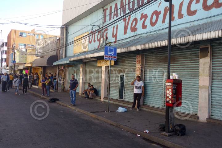 LEÓN, GUANAJUATO, 05ENERO2017.- Debido a los constantes mensajes sobre saqueos a negocios en la zona conocida como "La plaza del zapato", diversos locatarios cerraron sus negocios ante el temor, mientras que otros se armaron de tubos para defender sus negocios. FOTO: DANIEL CRUZ /CUARTOSCURO.COM