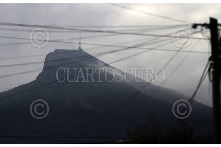 MONTERREY, NUEVO LEÓN, 07ENERO2017.- Se oberva partes congeladas en punta del cerro de la silla, vista de lado, debido a la entrada del frente frío número 21. Las temperaturas en el estado descendieron considerablemente de hasta 0 grados en el municipio de Monterrey. FOTO: GABRIELA PÉREZ MONTIEL /CUARTOSCURO.COM
