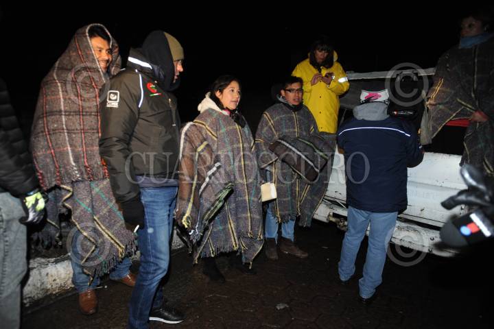 CIUDAD DE MÉXICO., 30ENERO2018.- La nevada que cayó durante algunos minutos, en colonias de la delegación Cuajimalpa, a causa de las bajas temperaturas que se han registrado durante la última semana, dejo una alfombra de blanca, en colonias como, Acopilco, La Pila y Tres Cruces, por lo que personal de la secretaria de Desarrollo Social de esta demarcación, acudieron a repartir cobijas para las personas más vulnerables. FOTO: LUIS CARBAYO /CUARTOSCURO.COM