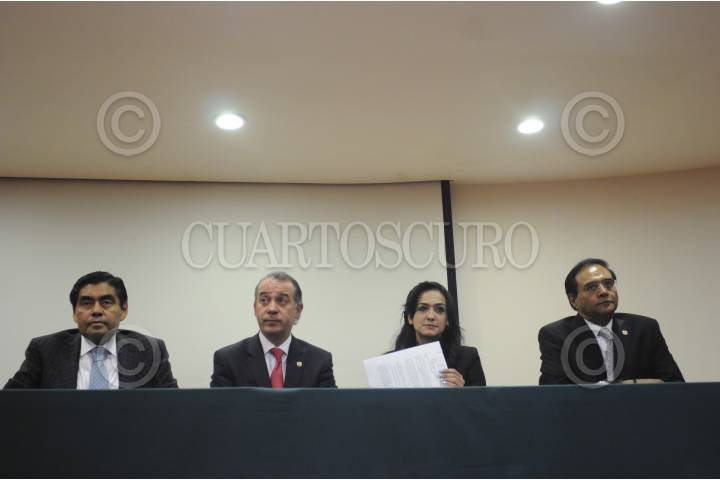 MÉXICO, D.F., 06FEBRERO2014.- Luis Miguel Gerónimo Barbosa Huerta, coordinador del grupo parlamentario del PRD en el Senado; Raúl Cervantes Andrade, presidente de la mesa directiva del Senado de la República; Iris Vianey Mendoza Mendoza., senadora con licencia del PRD; y Ángel Benjamín Robles Montoya, senador por Oaxaca del PRD; acudieron a la Procuraduría General de la República, a presentar una denuncia de hechos para que sea investigada la senadora con licencia originaria de Apatzingán, Michoacán, en torno al presunto involucramiento de su persona con el grupo delictivo conocido como Los Caballeros Templarios. FOTO: IVÁN STEPHENS /CUARTOSCURO.COM