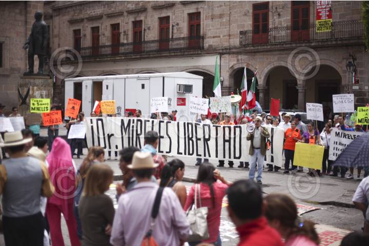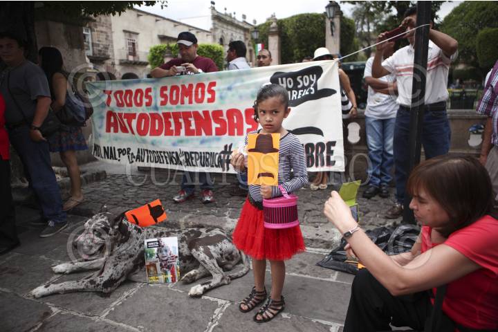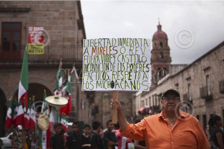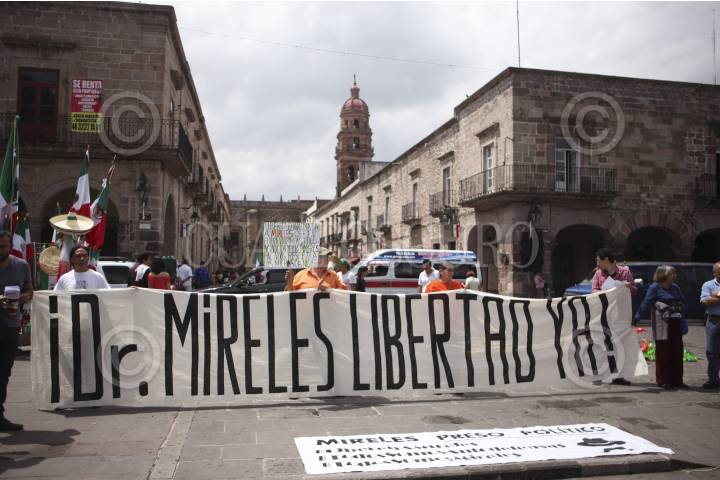 MORELIA, MICHOACÁN, 31AGOSTO2014.- Ciudadanos asistieron a una manifestación en el centro histórico de la capital, como parte de una campaña mundial pacifica convocada por el canal de noticias de You Tube, Grillonautas, para exigir la liberación inmediata del líder moral de las autodefensas, José Manuel Mireles Valverde. FOTO: ALAN ORTEGA / CUARTOSCURO.COM