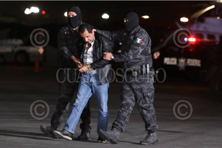 MÉXICO, D.F., 05MARZO2015.- Flavio Gómez Martínez, hermano de Servando Gómez Martínez, alias La Tuta, líder de Los Caballeros Templarios, fue consignado al Centro Federal de Readaptación Social número 5, Oriente, ubicado en Villa Aldama, Veracruz. La imagen el día 27 de febrero en donde fue presentado junto con su hermano Servando Gómez la Tuta en el hangar de la PGR. FOTO: ARCHIVO / SAÚL LÓPEZ /CUARTOSCURO.COM