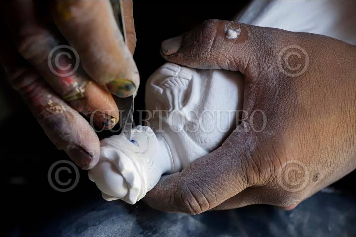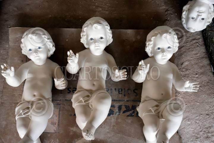 Figuras de Niño Dios son elaboradas con yeso para los nacimientos.