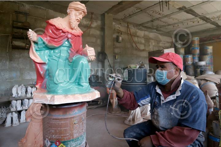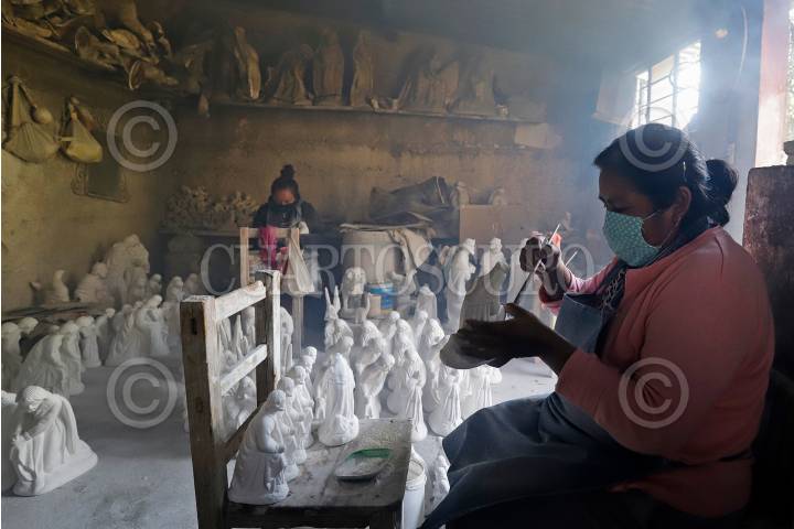 Artesanas elaborar figuras religiosas para ser colocadas en los nacimientos esta navidad.