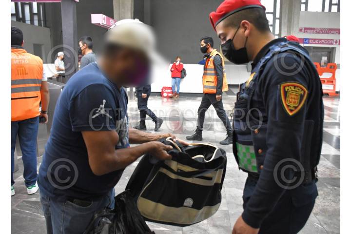 Con revisiones a usuarios del metro inició el operativo "Cero Pirotecnia", para esta temporada decembrina, en las estaciones como Merced, Jamaica, Candelaria, entre otras.
