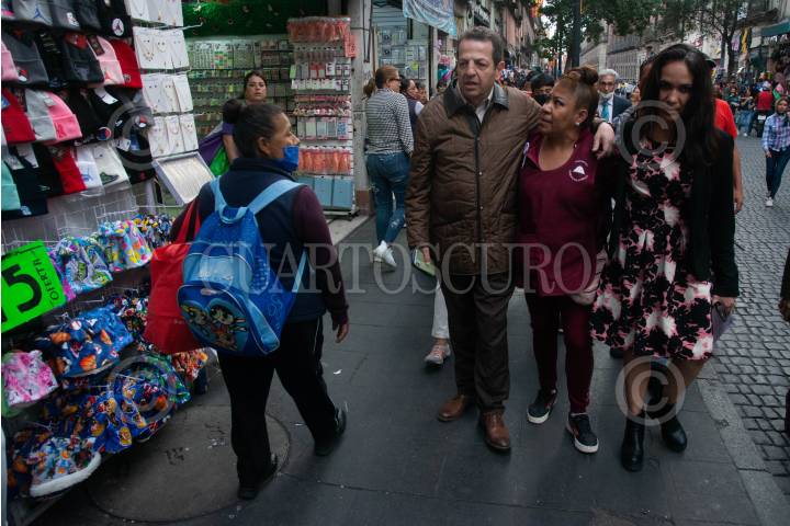 Fadlala Akabani Hneide, secretario de Desarrollo Económico, y Dunia Ludlow Deloya, Subsecretaria de Programas de Alcaldías y Reordenamiento de la Vía Pública, encabezaron el recorrido de en plazas de comercio popular sobre calle Moneda, principalmente las remodeladas plazas "MC" y "Plaza MG", y La Gran Plaza con motivo del Buen Fin y Temporada Decembrina-Reyes.