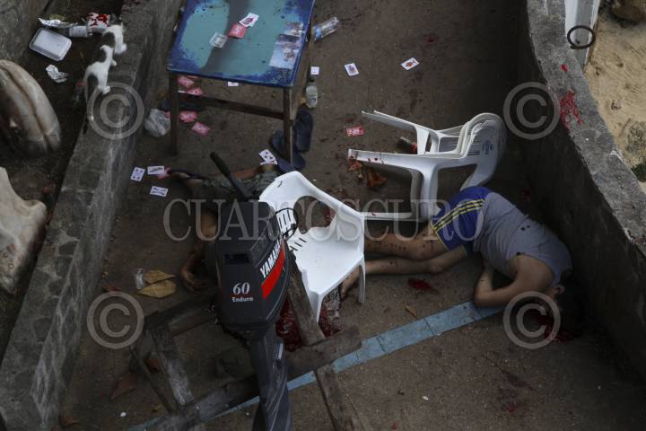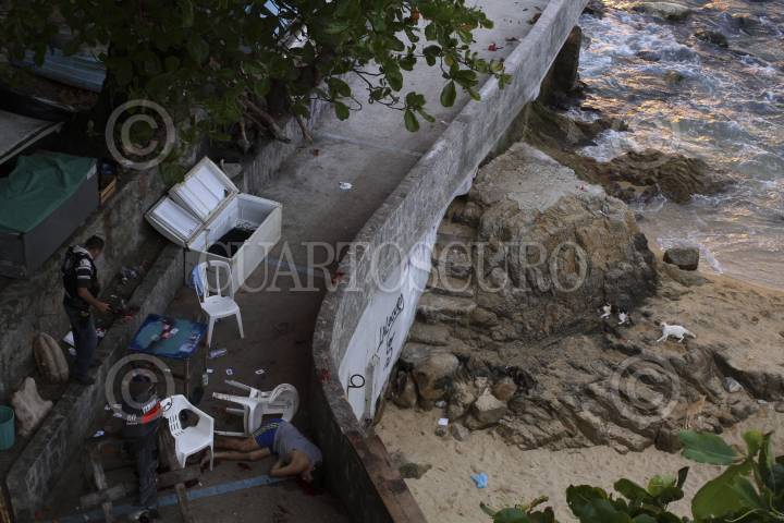 ACAPULCO, GUERRERO, 22MARZO2016.- Imparable la violencia en Acapulco Guerrero dos hombres fueron asesinados en playa La Angosta, en la zona Tradicional de este puerto, al parecer dedicados a reparar lanchas de los pescadores. Esta agresión ocurre en plena temporada vacacional de Semana Santa, cuando en el puerto hay un despliegue de seguridad de los tres niveles de gobierno que dijo el gobernador Astudillo que estarían todas las playas estarían seguras. Las víctimas fueron sorprendidas mientras jugaban barajas junto a las embarcaciones; fueron asesinados dos de nombre Mario Alberto Radilla Santana, y Virgilio Avilés Ventura, un joven de entre 20 y 25 años; y uno más de alrededor de 30 años. El lugar fue acordonado por gendarmes federales y soldados del Ejército Mexicano, a quienes familiares de las víctimas reprocharon su falta de efectividad para prevenir el delito. Testigos refirieron que los agresores huyeron a bordo de una motocicleta con dirección a Sinfonía del Mar, sobre la turística avenida Adolfo López Mateos. FOTO: BERNANDINO HERNÁNDEZ /CUARTOSCURO.COM
