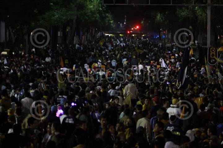 MÉXICO, D.F., 01JUNIO2009.- Al rededor de cuatro horas, miles de seguidores del equipo universitario permanecieron en la glorieta del Ángel de la Independencia, donde se tenía previsto que los actuales campeones del fútbol mexicano llegaran en un autobus para saludar a los miles de aficionados que les aguardaban, finalmente al ver que los campeones no llegaban los asistentes se retiraron. FOTO: SÁSHENKA GUTIÉRREZ/CUARTOSCURO.COM