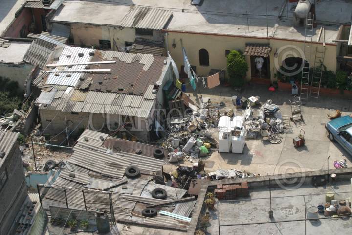 MÉXICO, DF., 24MARZO2014.- Vista desde la azotea de una de las antiguas vecindades de la colonia Juárez sobre la calle de Barcelona. La colonia Juárez, limitada al norte con el Paseo de la Reforma, y colindante con las colonias Tabacalera, Cuauhtémoc, Centro, Doctores y Roma, es una de las más antiguas de la ciudad. El barrio data de 1898 cuando se constituyó formalmente como una colonia para clases adineradas. Hoy, las construcciones carecen de mantenimiento, aunque aun conserva un estilo afrancesado. En el marco del 108 aniversario de la colonia Juárez, lo destacable es el alto índice de robos; actualmente la delegación Cuauhtémoc, junto con Iztapalapa, son las de mayor índice delictivo en la capital. FOTO: MARÍA JOSÉ MARTÍNEZ /CUARTOSCURO.COM
