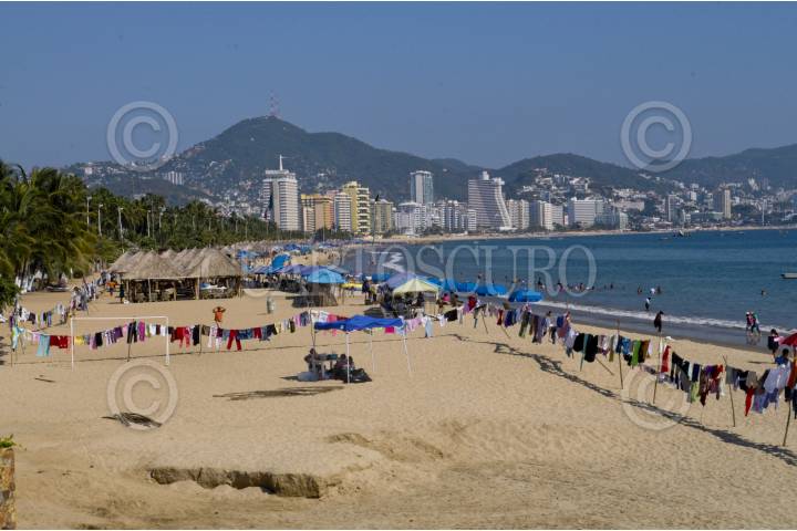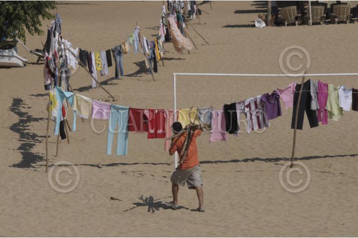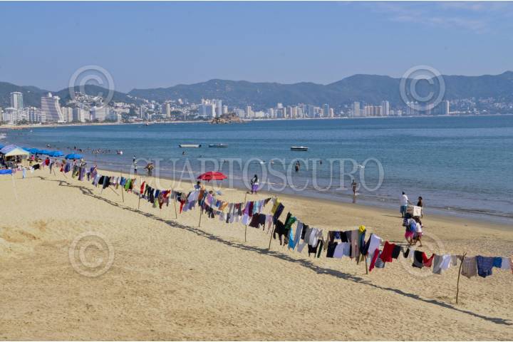 ACAPULCO, GUERRERO, 09DICIEMBRE2012.- Tendedero se extendieron desde la playa Dominguillo hasta Icacos y se utilizaron 37 kilómetros de cuerda, más de 40 mil pinzas y 28 mil palos de bambú en punto de las 7 de la mañana más de 20 fundaciones y asociaciones civiles en Acapulco comenzaron el armado del "tendedero" de 37 kilómetros a lo largo de la bahía de Santa Lucía, sobre la franja de arena, con el fin de recaudar ropa que será donada a gente que lo necesite en Zumpango, Atoyac, Teco añapa y Acapulco. FOTO: BERNANDINO HERNANDEZ /CUARTOSCURO.COM