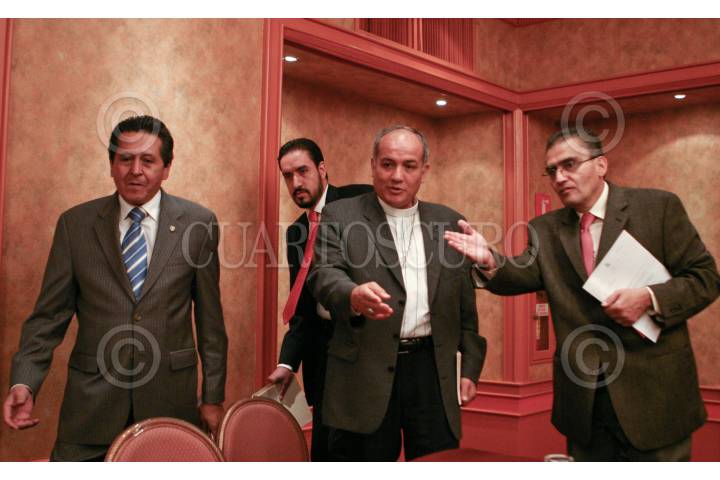 MÉXICO D.F. 22MAYO2008.- El senador Eduardo Nava, el diputado José Antonio Muñoz, el obispo José Leopoldo Gonzalez y José Antonio Ortega a su llegada a la presentación del libro "La verdad os hará libres; No tengan miedo; ¿Y el homicidio del cardenal Juan Jesús Posadas Ocampo?" FOTO: RODOLFO ANGULO/CUARTOSCURO.COM