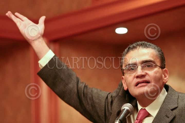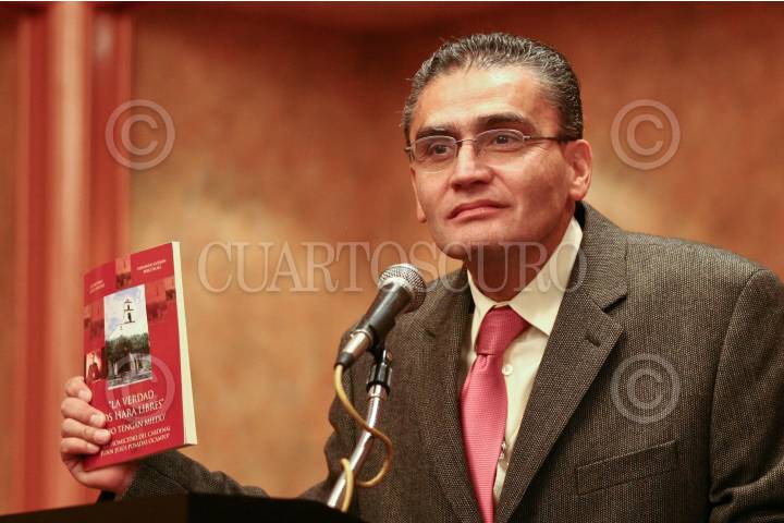 MÉXICO D.F. 22MAYO2008.- Fernando Guzman, secretario general del estado de Jalisco y autor del libro "La verdad os hará libres; No tengan miedo; ¿Y el homicidio del cardenal Juan Jesús Posadas Ocampo?" durante su participación en la presentación. FOTO: RODOLFO ANGULO/CUARTOSCURO.COM