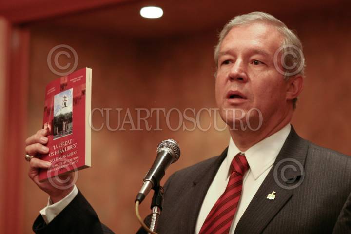 MÉXICO D.F. 22MAYO2008.- José Antonio Ortega autor del libro "La verdad os hará libres; No tengan miedo; ¿Y el homicidio del cardenal Juan Jesús Posadas Ocampo?" durante su participación en la presentación. FOTO: RODOLFO ANGULO/CUARTOSCURO.COM