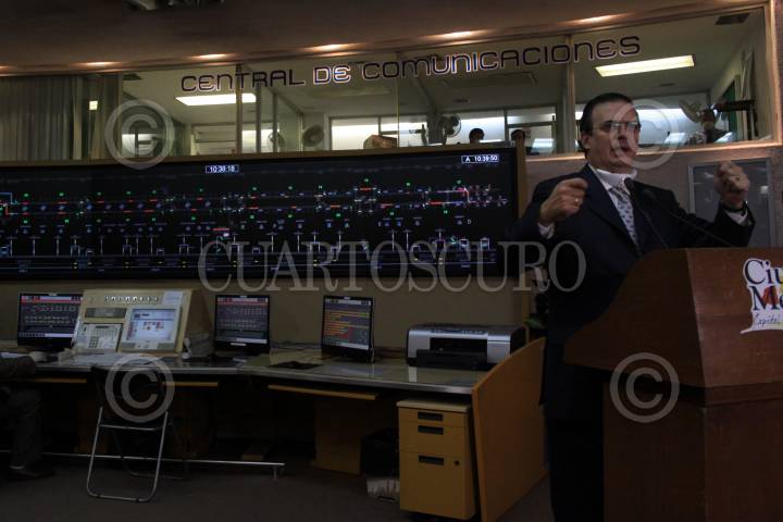 MÉXICO D.F., 02 MAYO2009.- Marcelo Ebrard jefe de gobierno del Distrito Federal puso en marcha el sistema de pruebas con cámaras termográficas a los usuarios del Metro, a fin de detectar a personas que tengan una temperatura superior a los 37.5 grados y, de corresponder con síntomas de influenza, canalizarlos a un hospital. FOTO: SÁSHENKA GUTIÉRREZ/CUARTOSCURO.COM