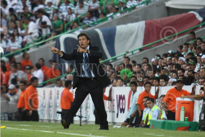 TORREON, COAHUILA, 20MAYO2010.- Ruben Omar Romano, director ténico de los guerreros del Santos Laguna durante el partido en contra de los Diablos del Toluca en el partido de ida de la final del torneo Bicentenario del fútbol mexicano que se realizó en el estadio Corona, quedando empatado a dos goles. FOTO: RODOLFO ANGULO/CUARTOSCURO.COM