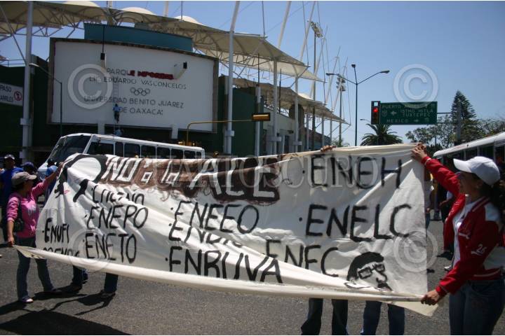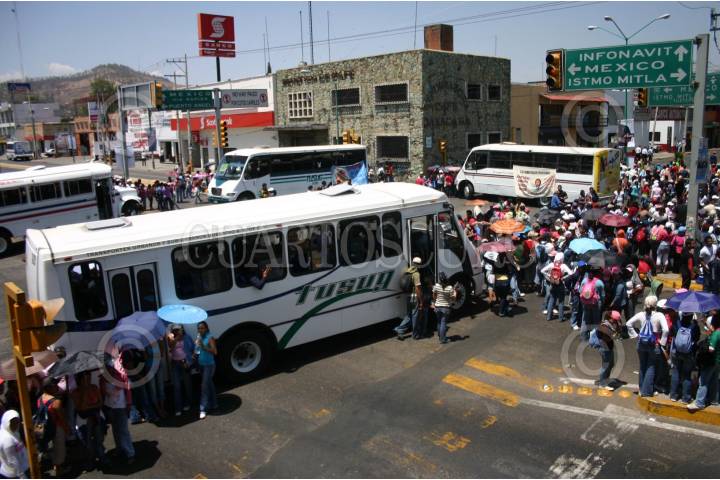 OAXACA, OAXACA, 24MARZO2009.- Más de 500 integrantes de la Coordinadora Estudiantil de Normales del Estado de Oaxaca, bloquearon el crucero de la Volkswagen y otras calles de la ciudad utilizando autobuses que tomaron por la fuerza para protestar en contra de la Alianza por la Calidad Educativa y para exigir respuestas al IEEPO, sobre su pliego petitorio, que no ha tenido ningún avance ni respuesta. FOTO: MAX NÚÑEZ/CUARTOSCURO.COM