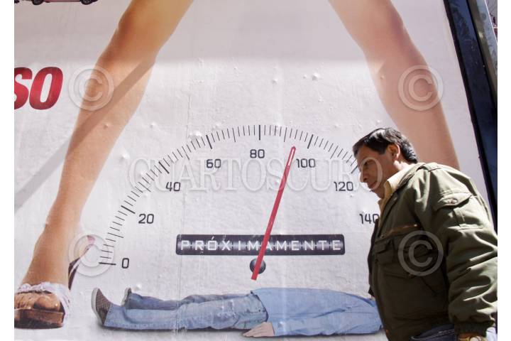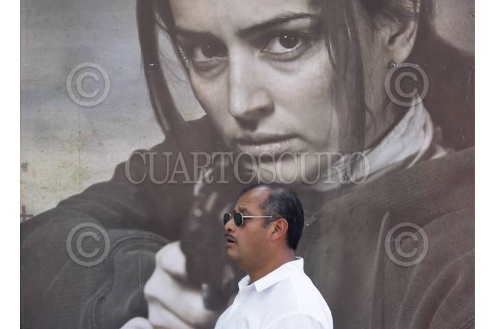 MÉXICO D.F., 13FEBRERO2009.- Un hombre camina en una de las calles de la ciudad de México, teniendo a sus espaldas el espectacular de una película FOTO: SÁSHENKA GUTIÉRREZ/CUARTOSCURO.COM