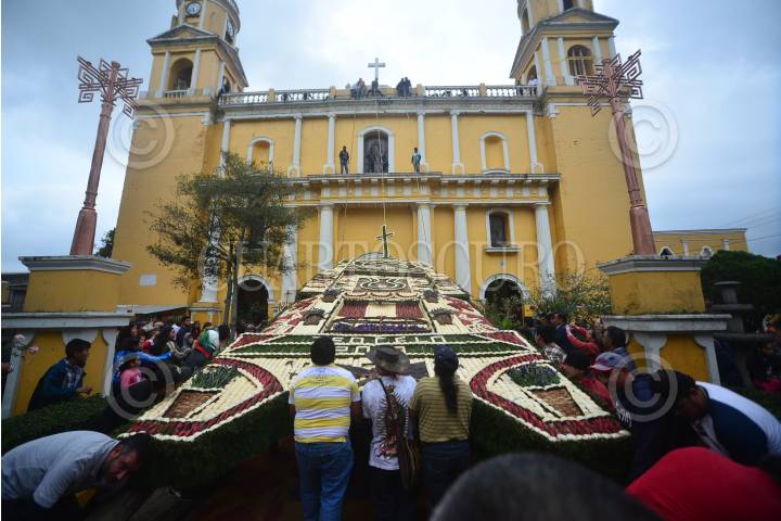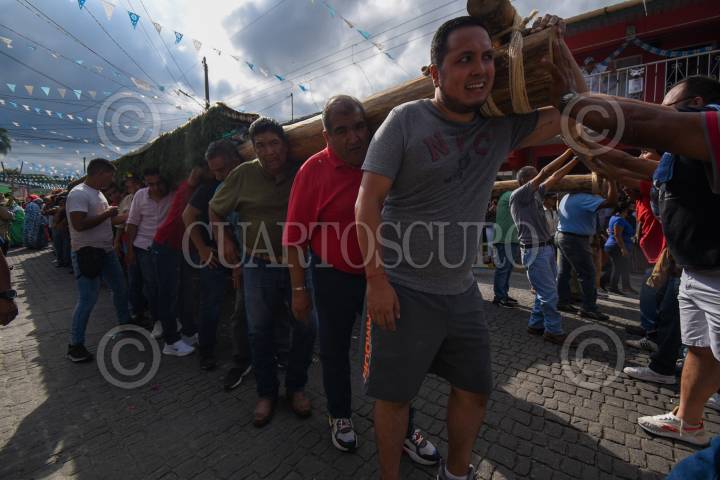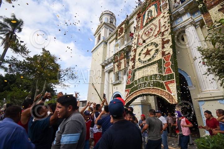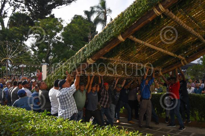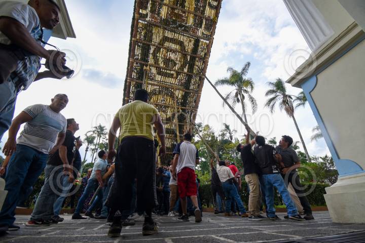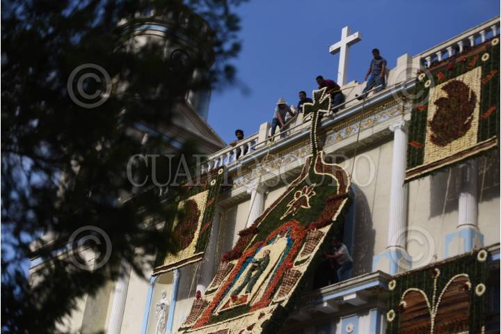 Pobladores de Teocelo llevaron a cabo la tradicional bajada del arco floral por los festejos de la Asunción de Nuestra Señora.